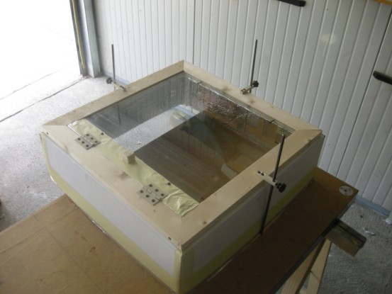 Questa è una prima prova col primo pannello ("specchio") in cartone rivestito sempre con carta alluminio,